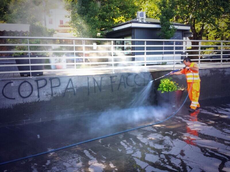 Il vandalismo non paga. Anzi, costa. Se da un lato gli imbrattatori dei Giardini del Torrione sono stati individuati, dall’altro sono state ripulite le scritte sul muretto di Piazza del Molo, le panchine e l’anfiteatro. Per farlo si è dovuto ricorrere ad una idropulitrice professionale ad altissima pressione per non danneggiare la pietra lavica. Ma, quel che più conta, è che l’intervento straordinario ha consumato soldi destinati alla manutenzione ordinaria. Come dire: la sciocchezza di pochi ricade sui servizi alla collettività.