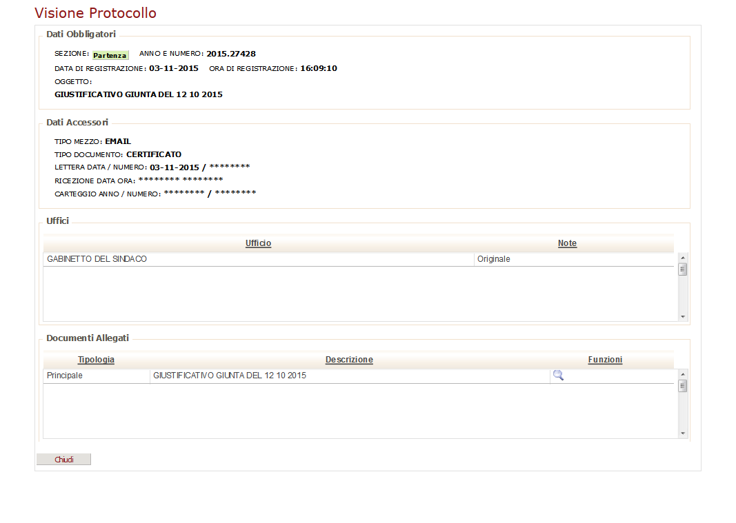 - Dettaglio di un protocollo inviato o ricevuto, è possibile consultare l’originale acquisito dal sistema