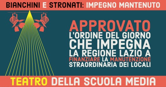 “Noi abbiamo agito solo nell’interesse dei ragazzi e delle associazioni culturali – concludono Bianchini e Stronati – abbiamo ottenuto l’approvazione dell’ODG che impegna la Regione a finanziare i fondi necessari agli interventi di manutenzione straordinaria del Teatro. L’Amministrazione si impegni affinché questi fondi possano essere richiesti e spesi al meglio per riconsegnare i locali alla collettività in tempi rapidi, evitando – possibilmente – atteggiamenti triviali che non si addicono ad una Amministrazione comunale ma soprattutto non interessano i cittadini”.